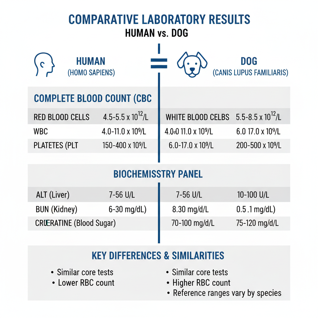 - Różne wartości referencyjne: Normy ludzkie nie mają zastosowania do psów – i odwrotnie.