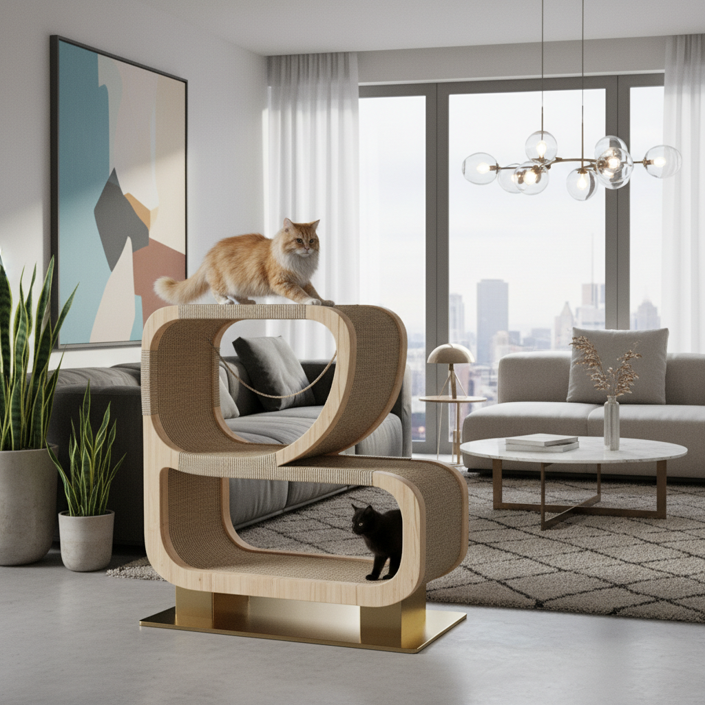 - Materiały: naturalny sizal, drewno, juta (koty lubią fakturę i zapach).
